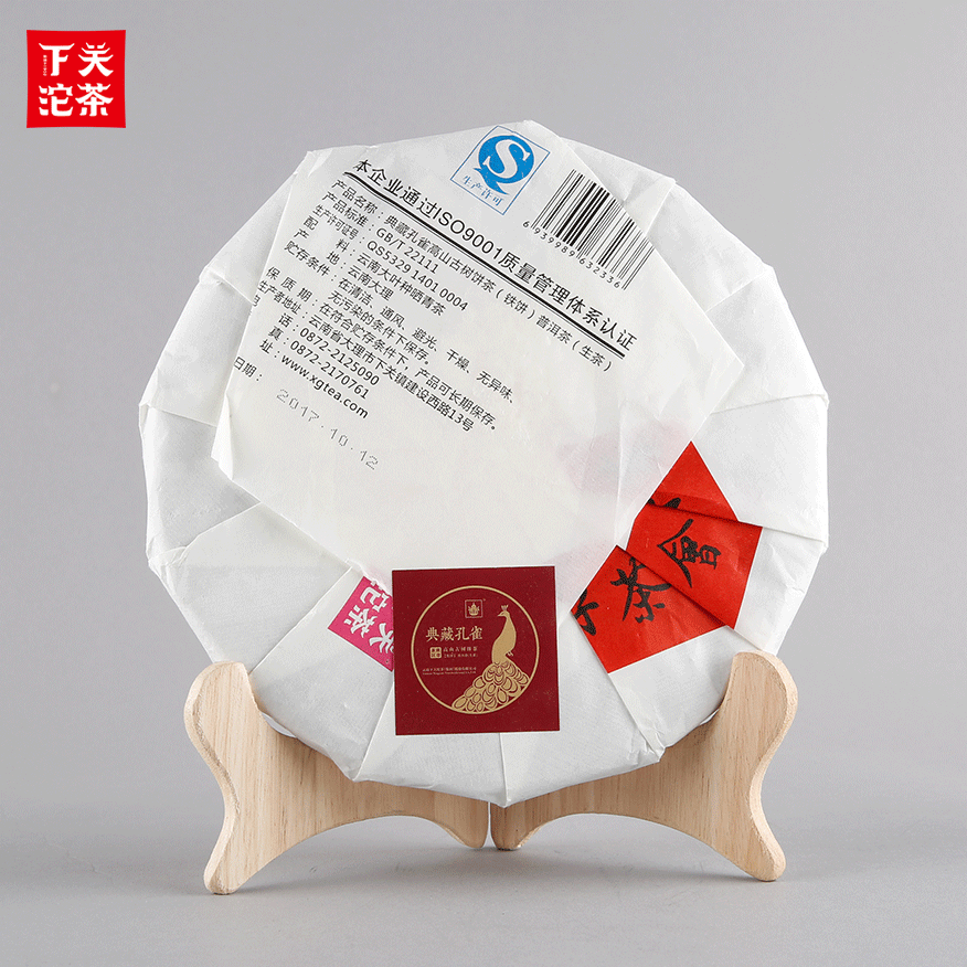 357克紙袋提盒裝典藏孔雀高山古樹(shù)餅茶 普洱茶(生茶)2017