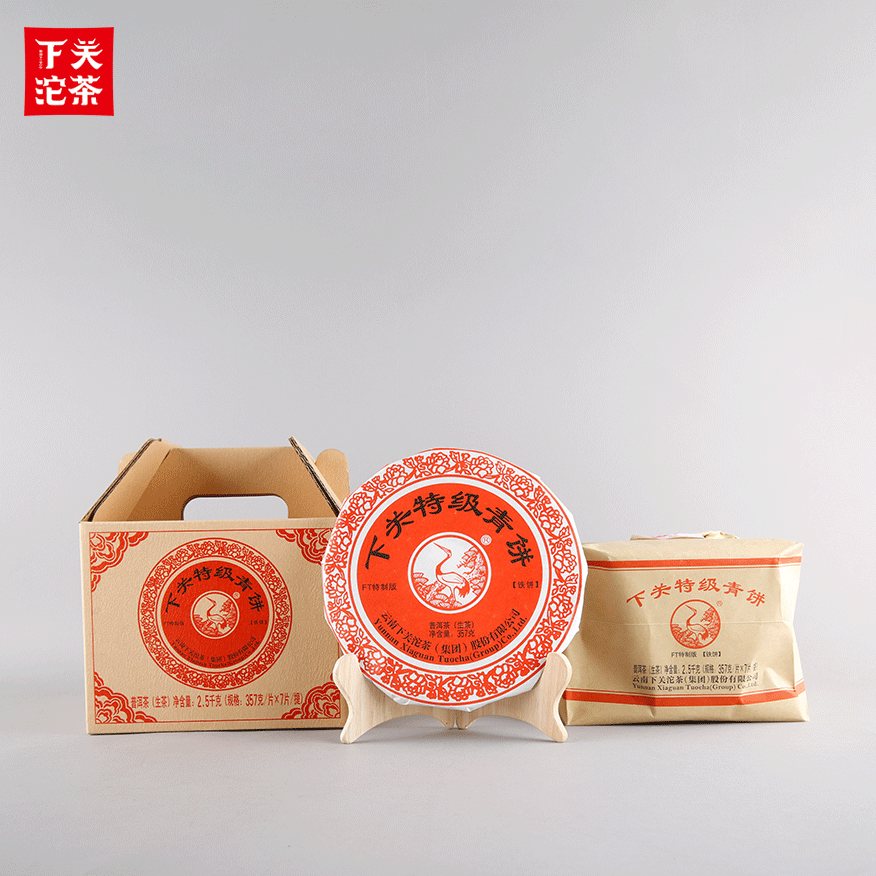 357克紙袋提盒裝下關特級青餅(鐵餅)普洱茶(生茶)2017