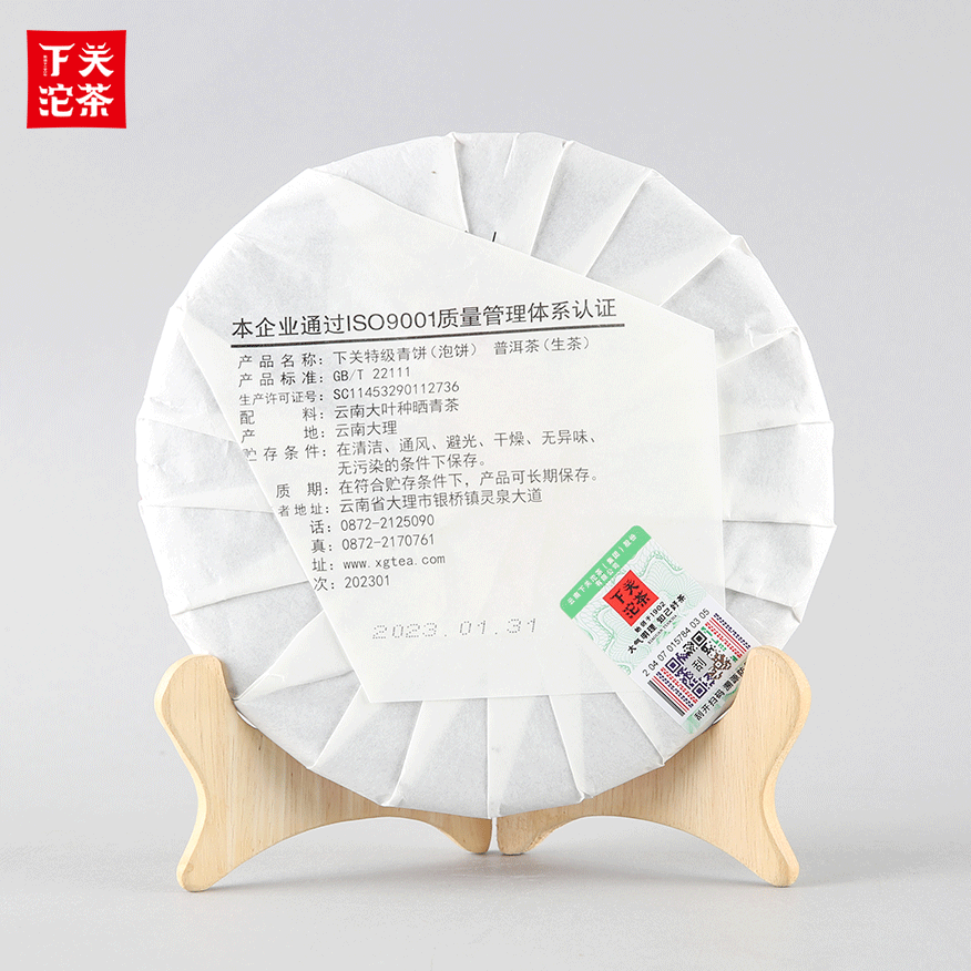 357克紙袋提盒裝下關(guān)特級(jí)青餅 普洱茶(生茶)2023