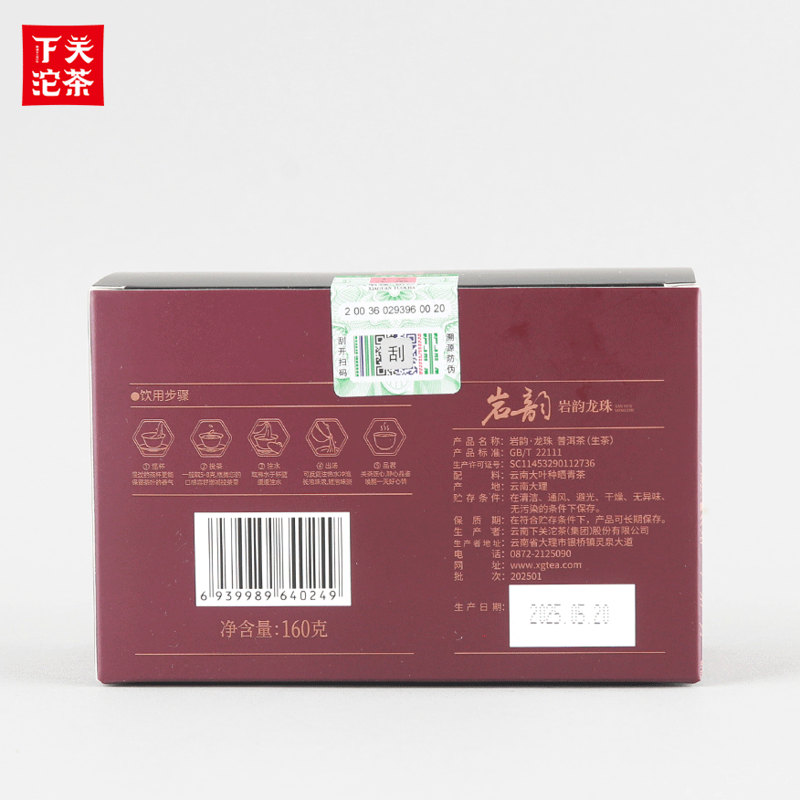 160克單盒裝巖韻·龍珠 普洱茶(生茶)2025